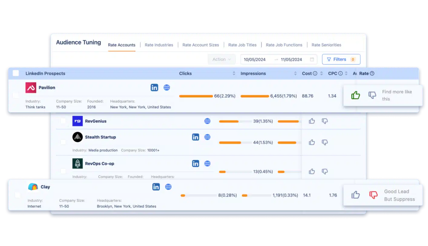- Audience lists: Vetted company/contact lists if doing ABM